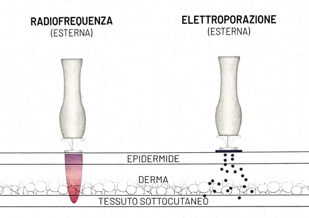 RADIOFREQUENZA è un onda elettromagnetica che si propaga nello spazio o in un cavo ed è in grado di far sviluppare calore endogeno, accelerando il metabolismo tissutale e inducendo neocollagenogenesi tramite la stimolazione dei fibroblasti (i quali a loro volta producono acido ialuronico). Nella tecnologia è inclusa la possibilità di variare e modulare, secondo le effettive esigenze della paziente, le modalità di funzionamento: capacitiva, resistiva, monopolare, bipolare.